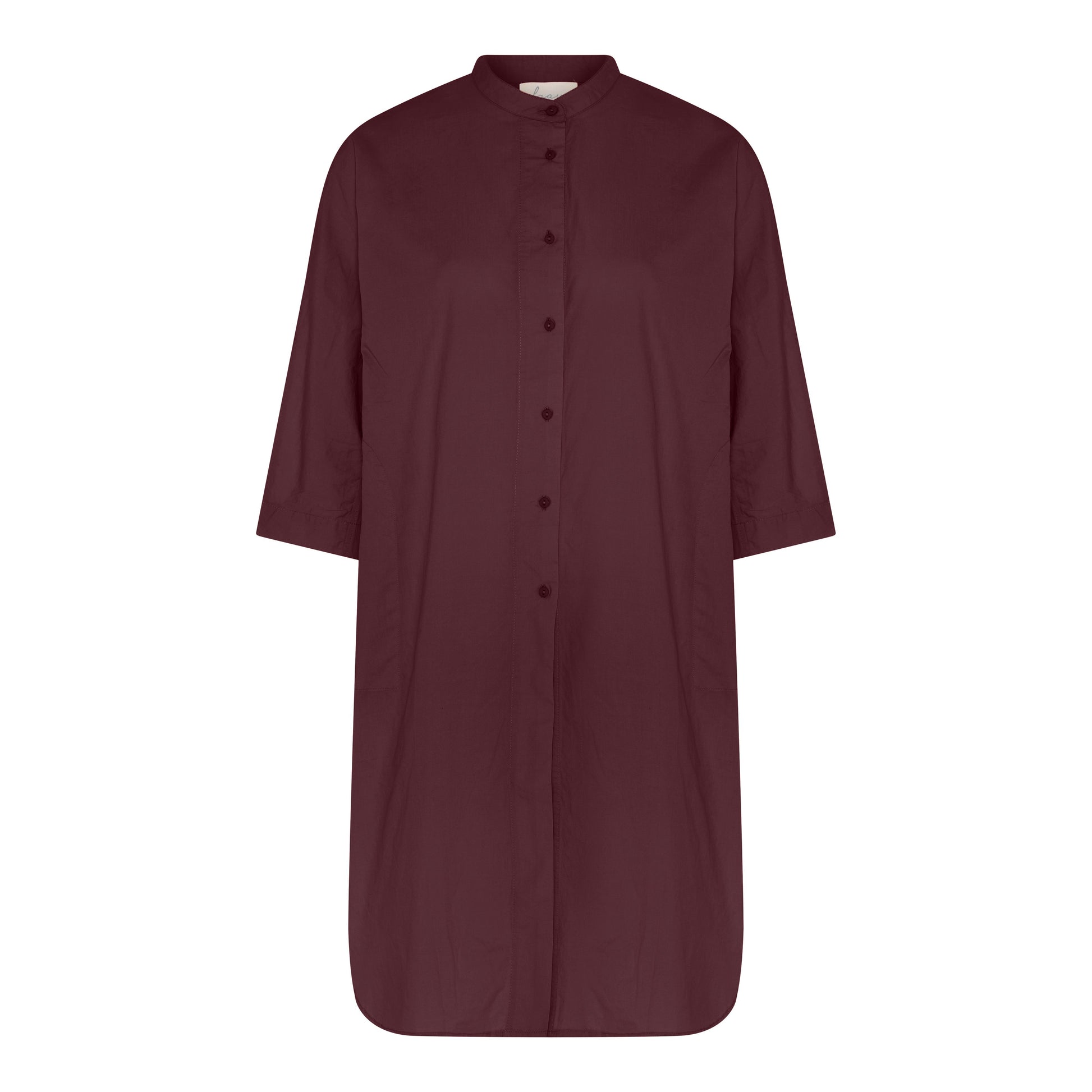 Oversize skjortekjole med 3/4 ærmer og kinakrave. Kjolen har sidelommer og er gennemknappet.