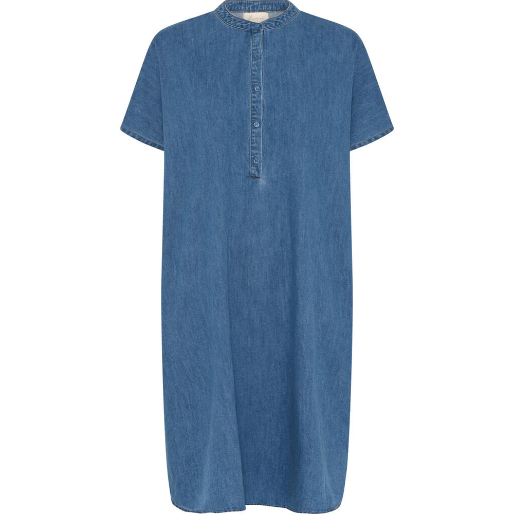 Seoul denim kjole har et kort ærme uden skuldersøm. Den har en halv stolpelukning foran og 2 usynlige sidelommer. Kjolen er super fin og enkel.