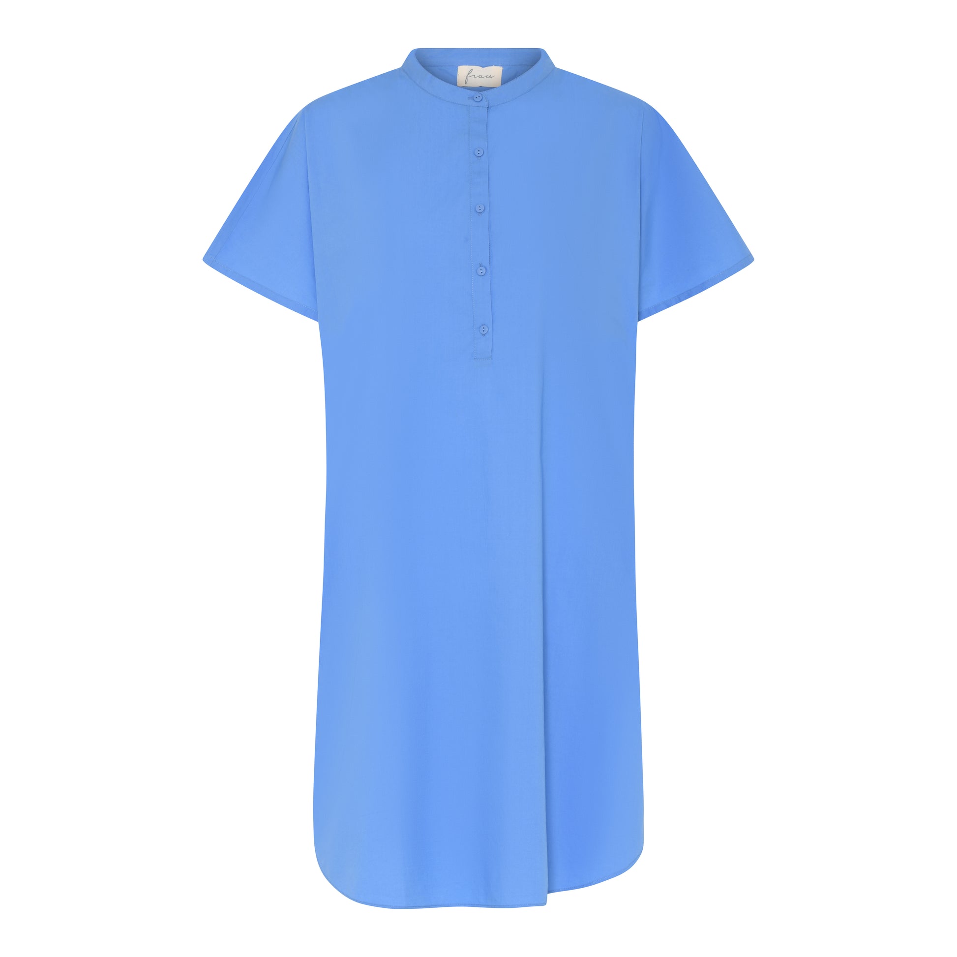 Skjortekjole med korte ærmer og kinakrave. Kjolen har sidelommer og stolpelukning.