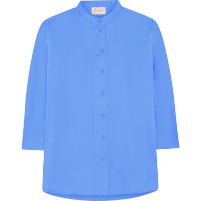 Skjorte med kinakrave, gennemknappet og med 3/4 lange ærmer. Skjorten er lidt længere bagpå end foran. her i en flot blå farve - Surf the web.