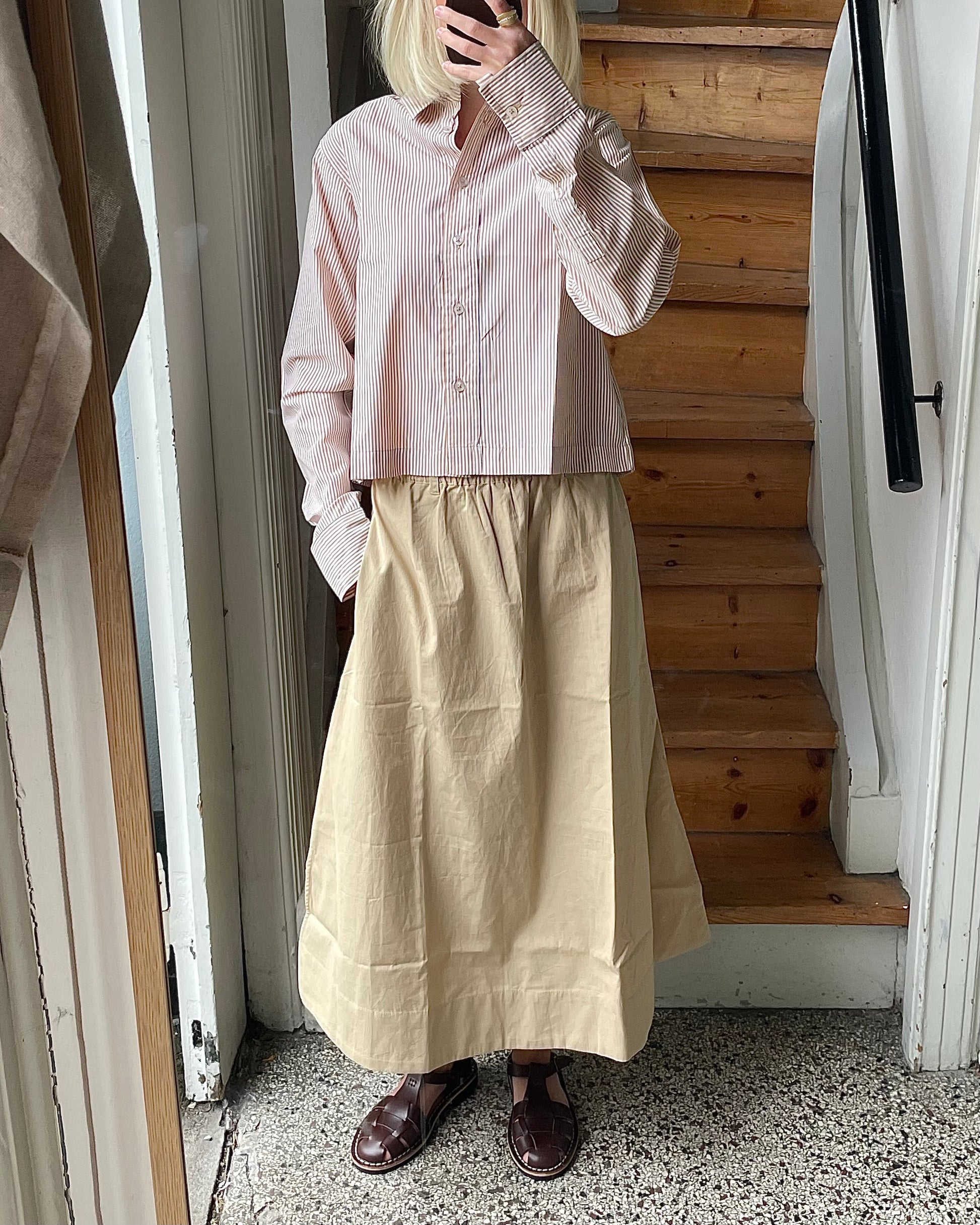Skøn nederdel fra PFR, lavet i 100% bomulds poplin. Nederdelen har elastic i taljen og lommer i siden