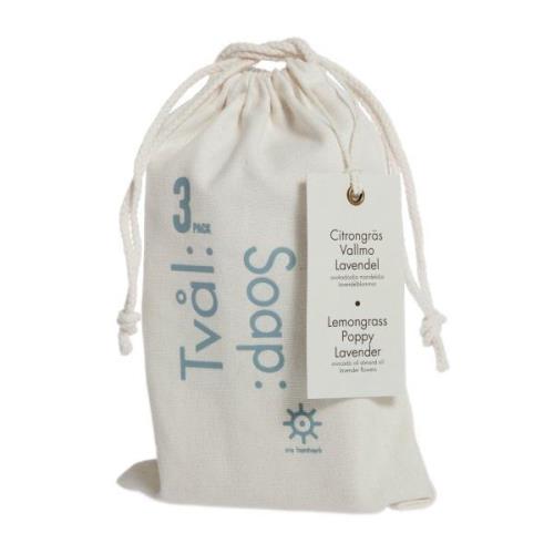 Sæbe i 3-pak, lemongrass, Poppy, lavender. Milde og cremede sæber med ægte æteriske olier. Valmuesæben har en skrubbeeffekt.