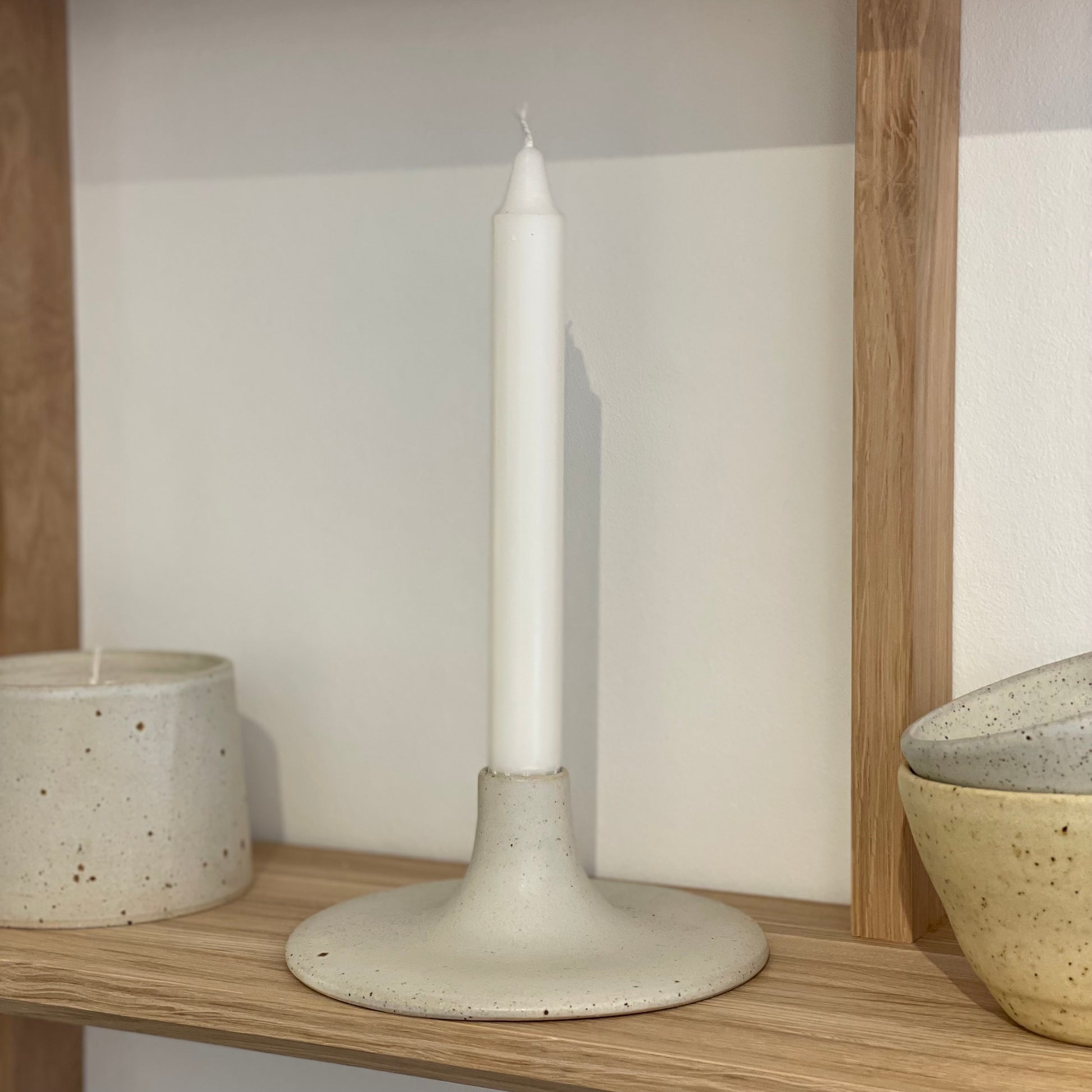 Smuk lysestage. Håndlavet af plettet stentøjsler.