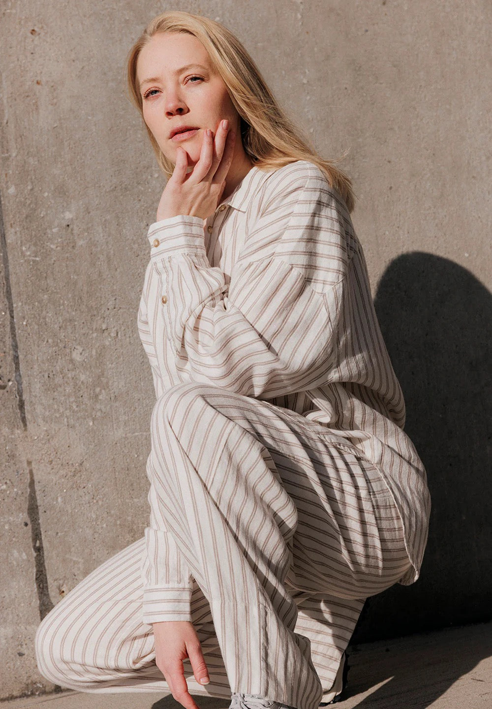 Stribet Bukser PJ, warm grey stripe - Rethinkit Studio
