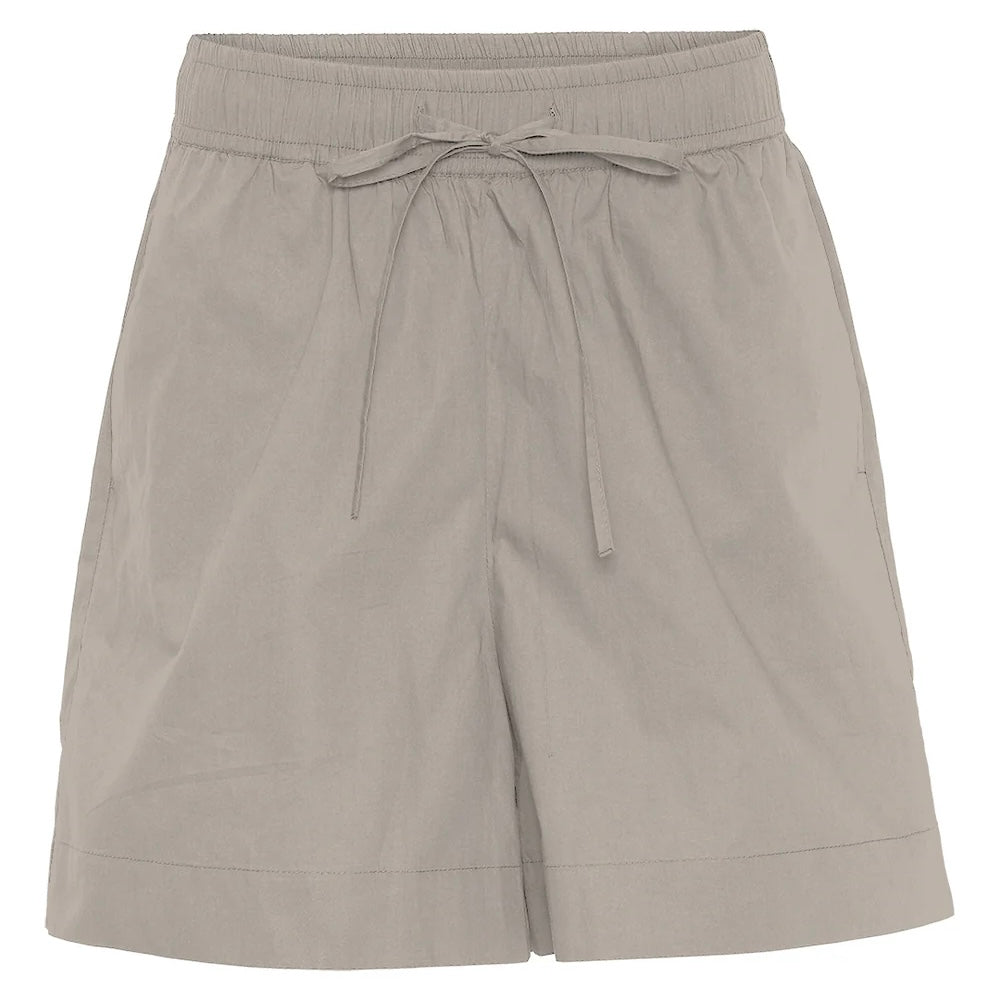 Shorts med vide ben, baglommer, bred elastik i taljen og bindebånd.