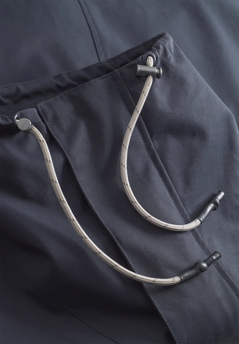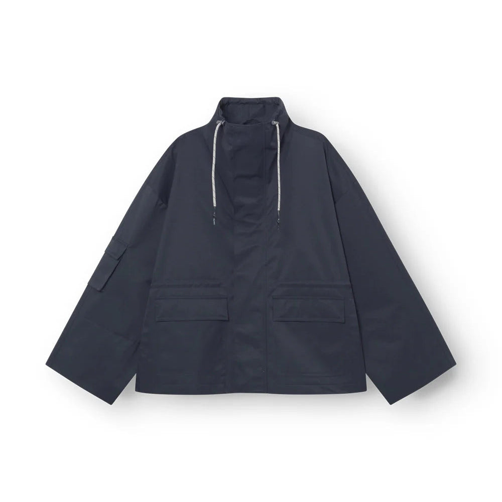 Klassisk cool arbejdstøj æstetik med masser af funktionalitet og cool udseende. Jakken har en høj firskåren krave, der kan justeres med snore til beskyttelse mod vinden. Jakken har også en vindmanchet inde i de brede ærmer.