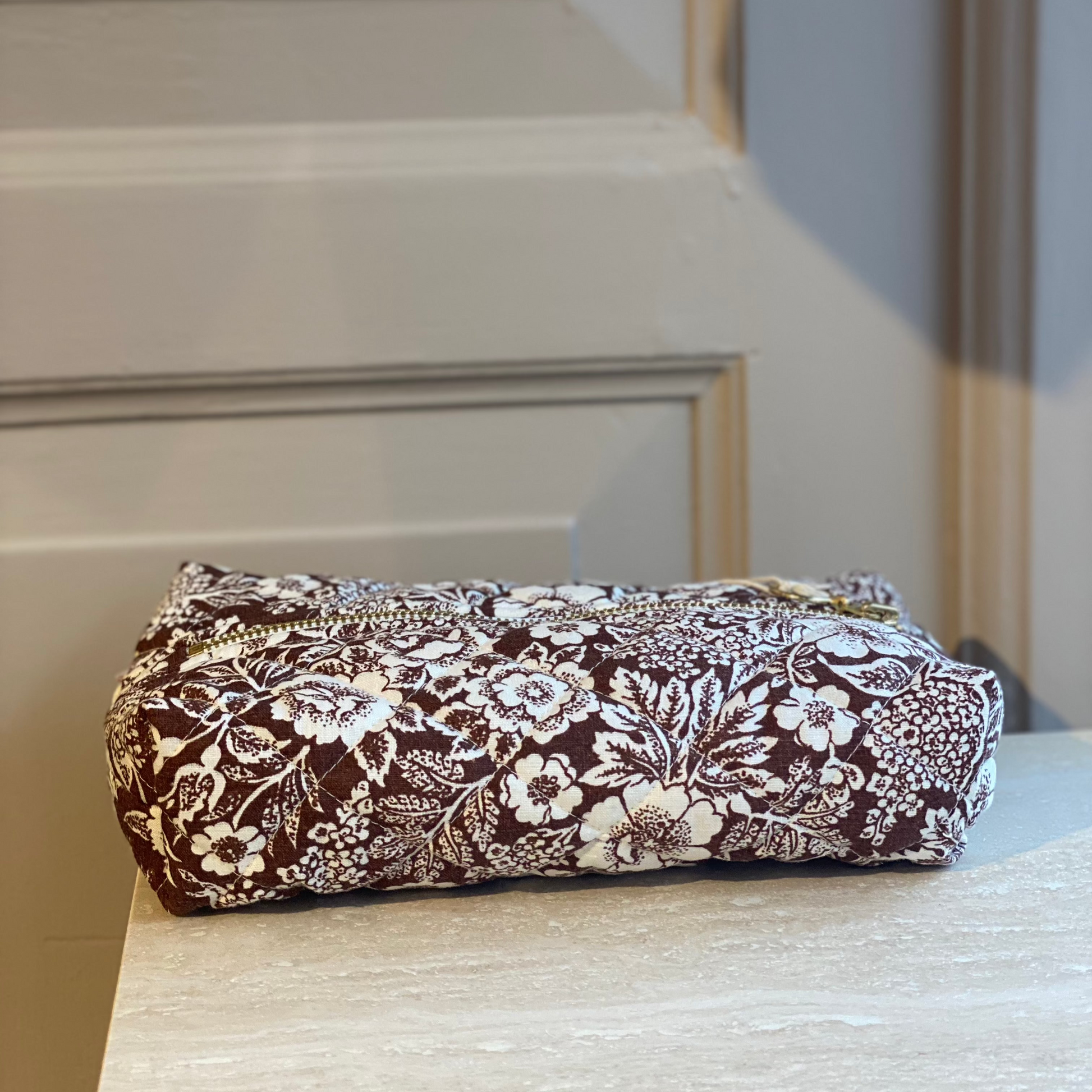 Toilettaske/makeuppung/penalhus, Brun m. Hvide blomster - Vita Vass