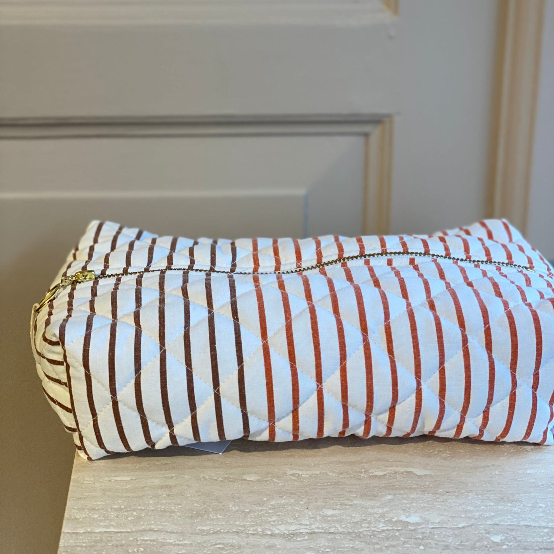 Toilettaske/makeuppung/penalhus, Hvid m. Rust og brun stribe - Vita Vass