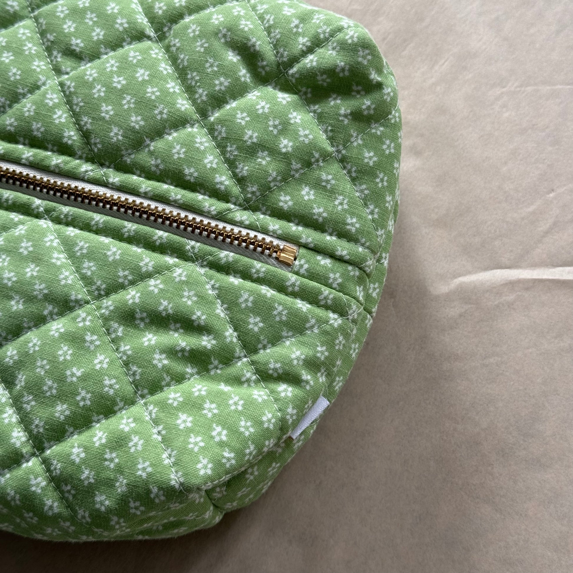 Toilettaske/makeuppung/penalhus, grøn m. Små hvide blomster - Vita Vass