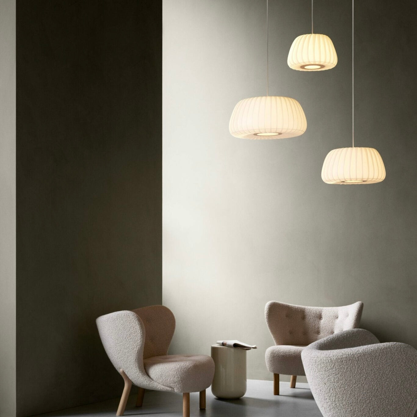 TR19 pendlen har et robust og meget elegant look. Fås i to materialer, coated papir og birkefiner. Aktuel leveringstid på lamper: 4-6 uger