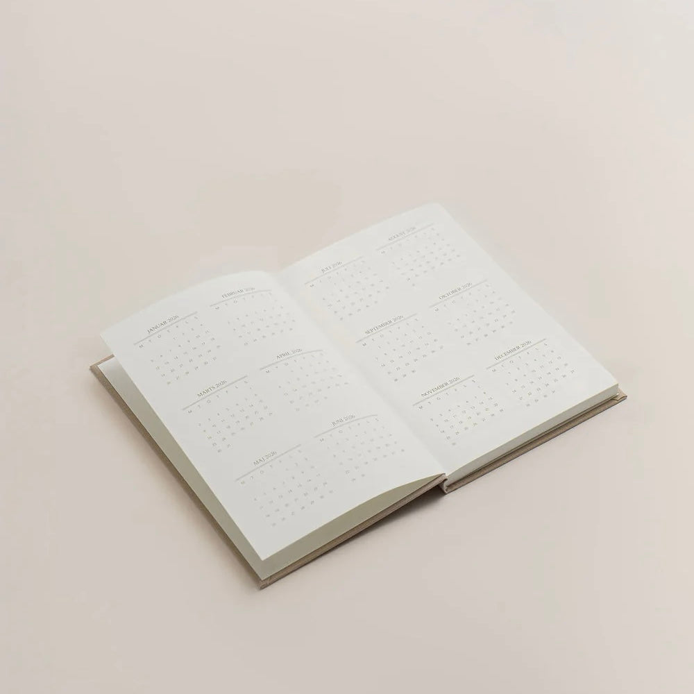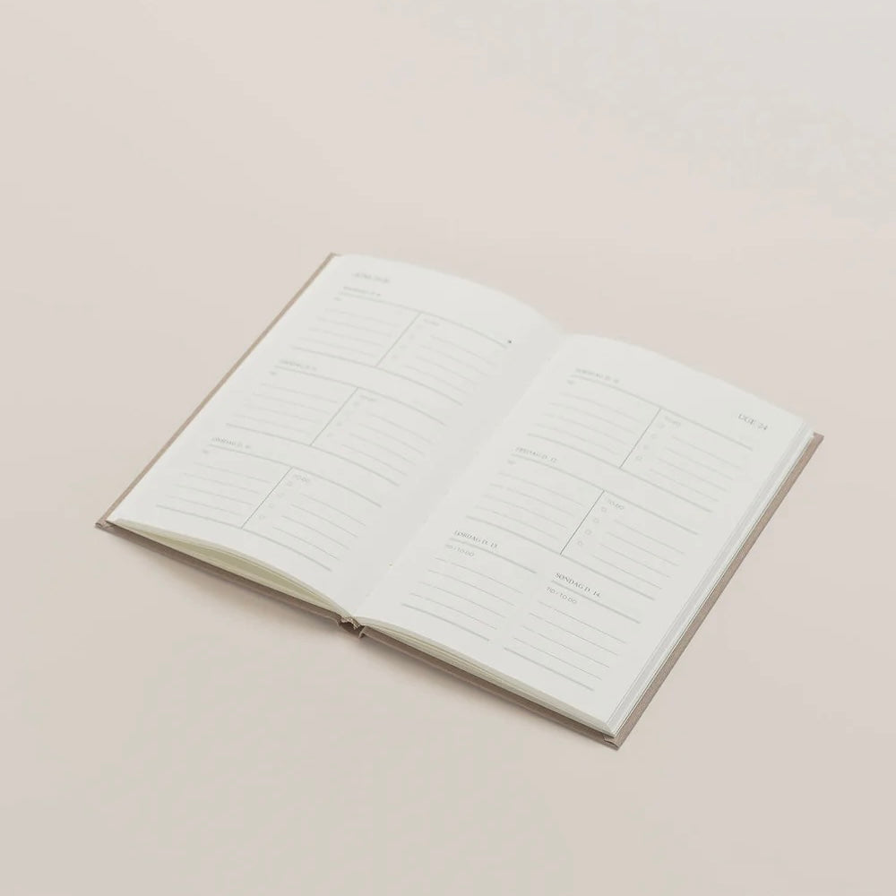 Ugekalenderen er designet med fokus på funktionalitet og æstetik. Kalenderen dækker hele år 2026 med én uge per sideopslag. Den lille ugekalender sikrer, at du bevarer overblikket, og den er let at have med på farten.