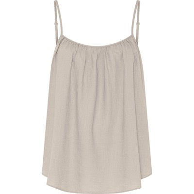 Vancouver hør top kan reguleres i længden på stropperne og i vidden med en snøre midt ryg.